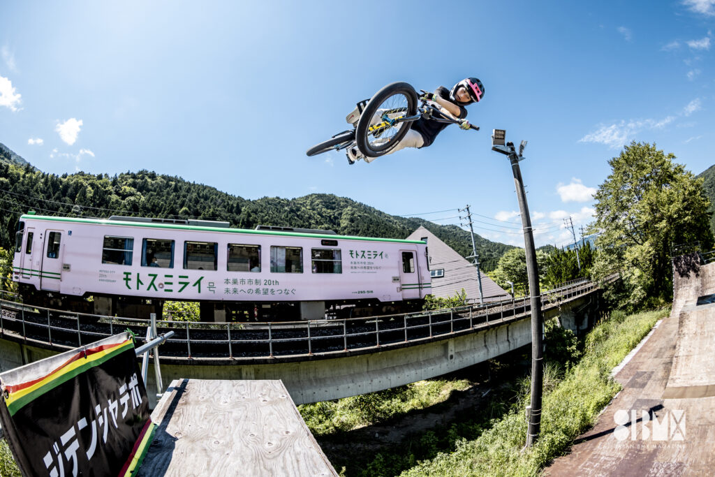 小澤美晴、15歳。横に電車が走るNEO BMXパークで乗ってます。